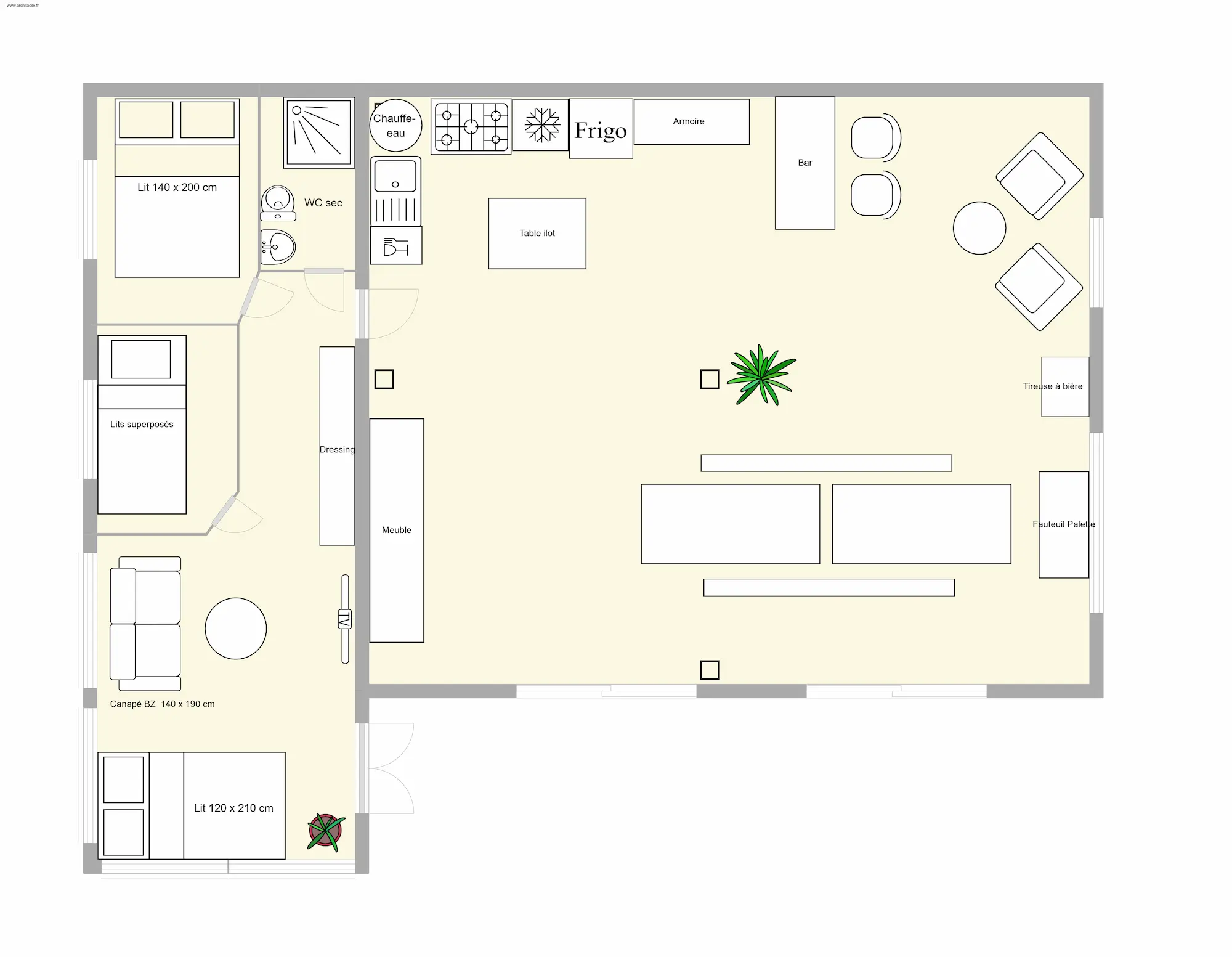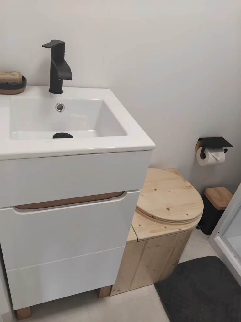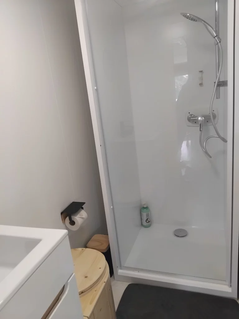 • 1 salle de bain disposant d’un toilette sec, d’une douche et d’un ballon d’eau chaude de 300 litres
